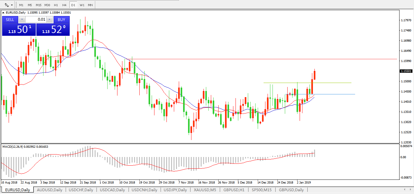 交易策略:在1.1495之上,看涨,目标价位为 1.1595 ,然后为1 .1620