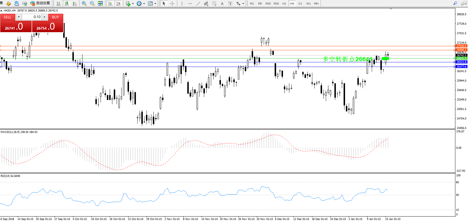 交易策略:26641上方看涨,目标26900、27026