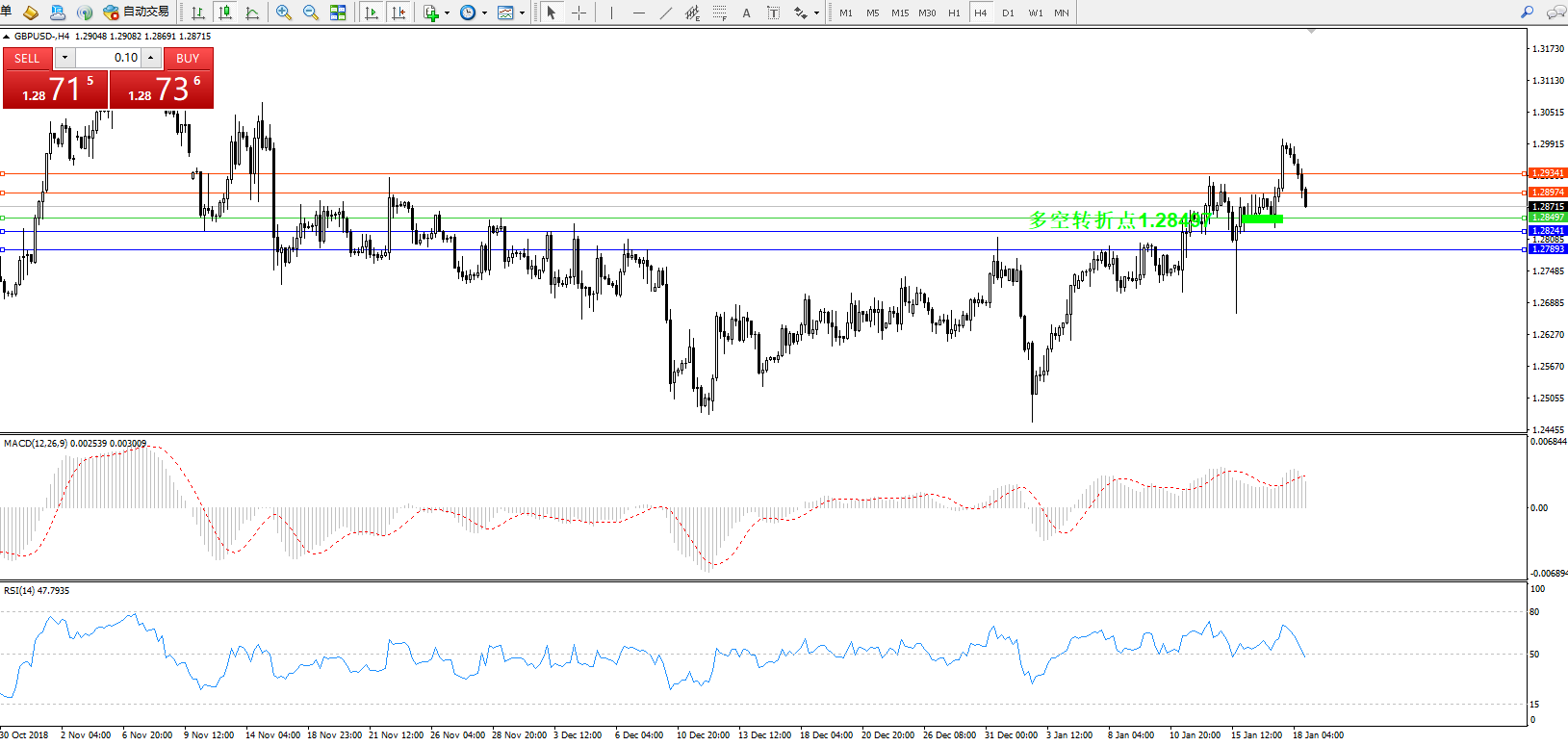 交易策略:1.28497上方看涨,目标1.28974、1.29341