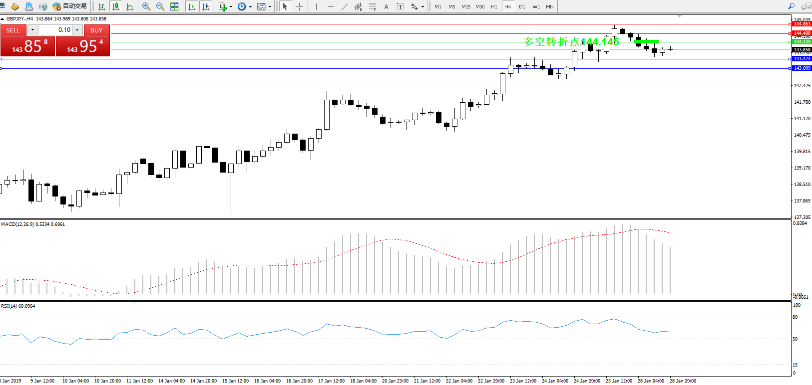 交易策略:144.145下方看跌,目标143.474143.099