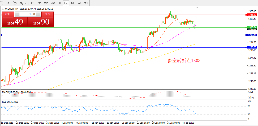交易策略:在1308.00之下看跌,目标1300.00 1280.00