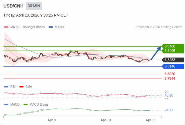 替代方案: 在6.8146以下,期待6.8020和6.7944。