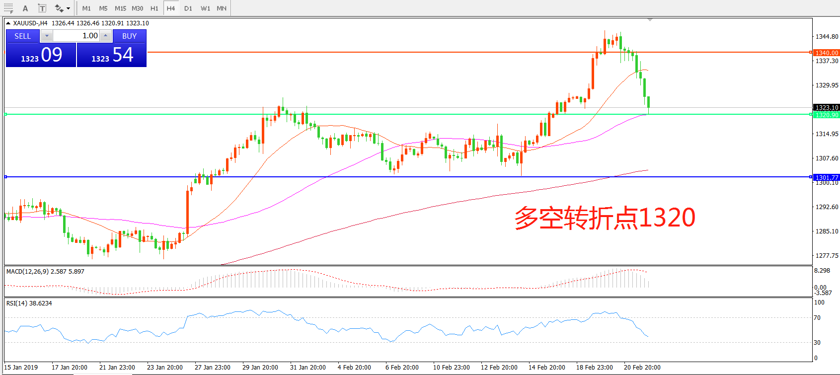 多空转折点:1320.00