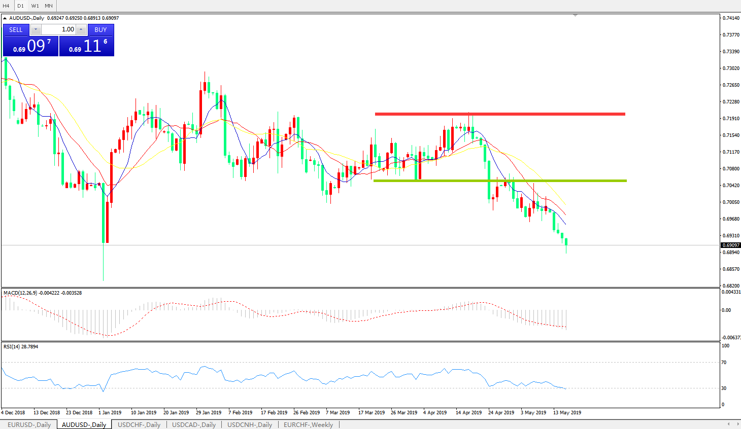 交易策略:在0.7110之下,看跌,目标价位为0.6920,然后为0.6850。