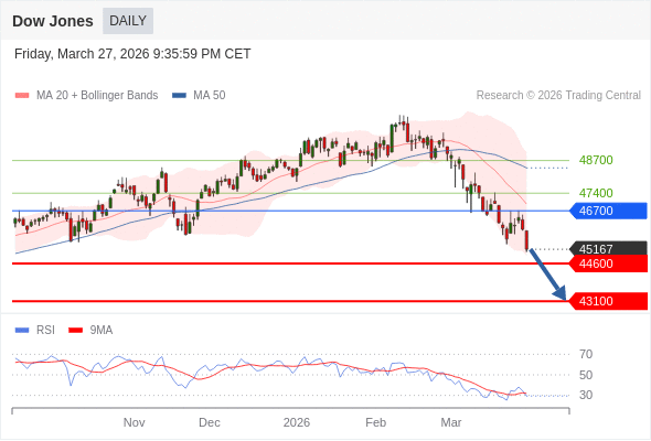 在 46700 之下,看跌,目标价位为 44600 ,然后为 43100 。