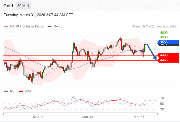 在 4555 之下,看跌,目标价位为 4490 ,然后为 4465 。