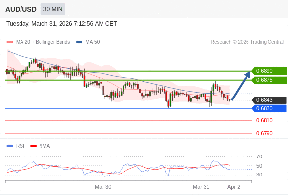 在 0.6830 之上,看涨,目标价位为 0.6875 ,然后为 0.6890 。