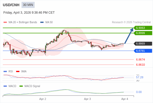 替代方案: 在6.8781以下,期待6.8674和6.8610。
