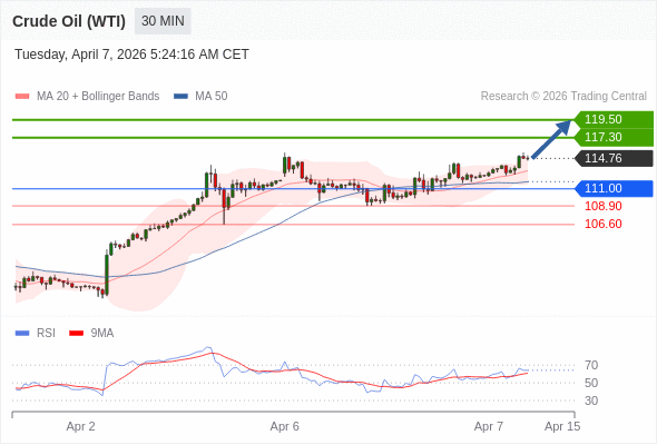 在 111.00 之上,看涨,目标价位为 117.30 ,然后为 119.50 。