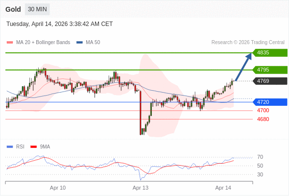 在 4720 之上,看涨,目标价位为 4795 ,然后为 4835 。