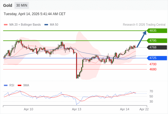 在 4725 之上,看涨,目标价位为 4795 ,然后为 4835 。