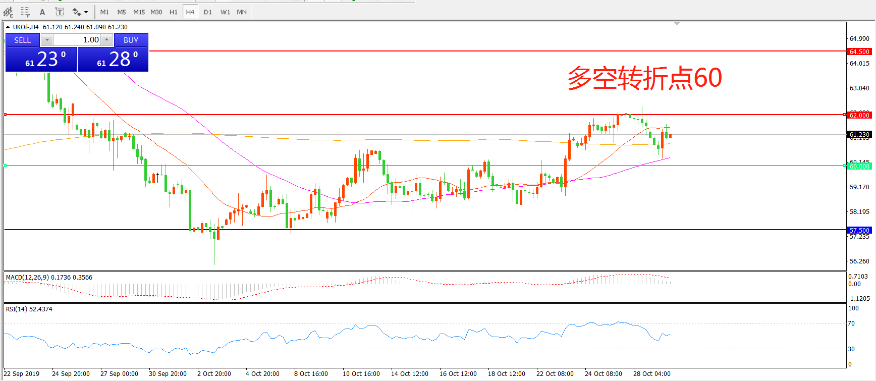 多空转折点:60.00
