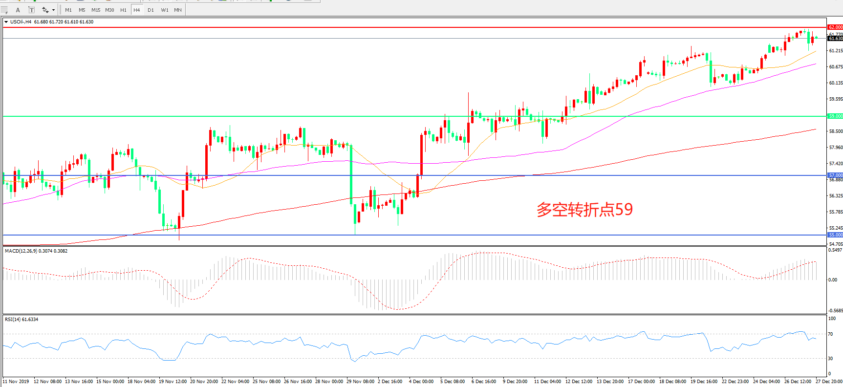 交易策略: 在59.00 之上看涨,目标62.00 65.00