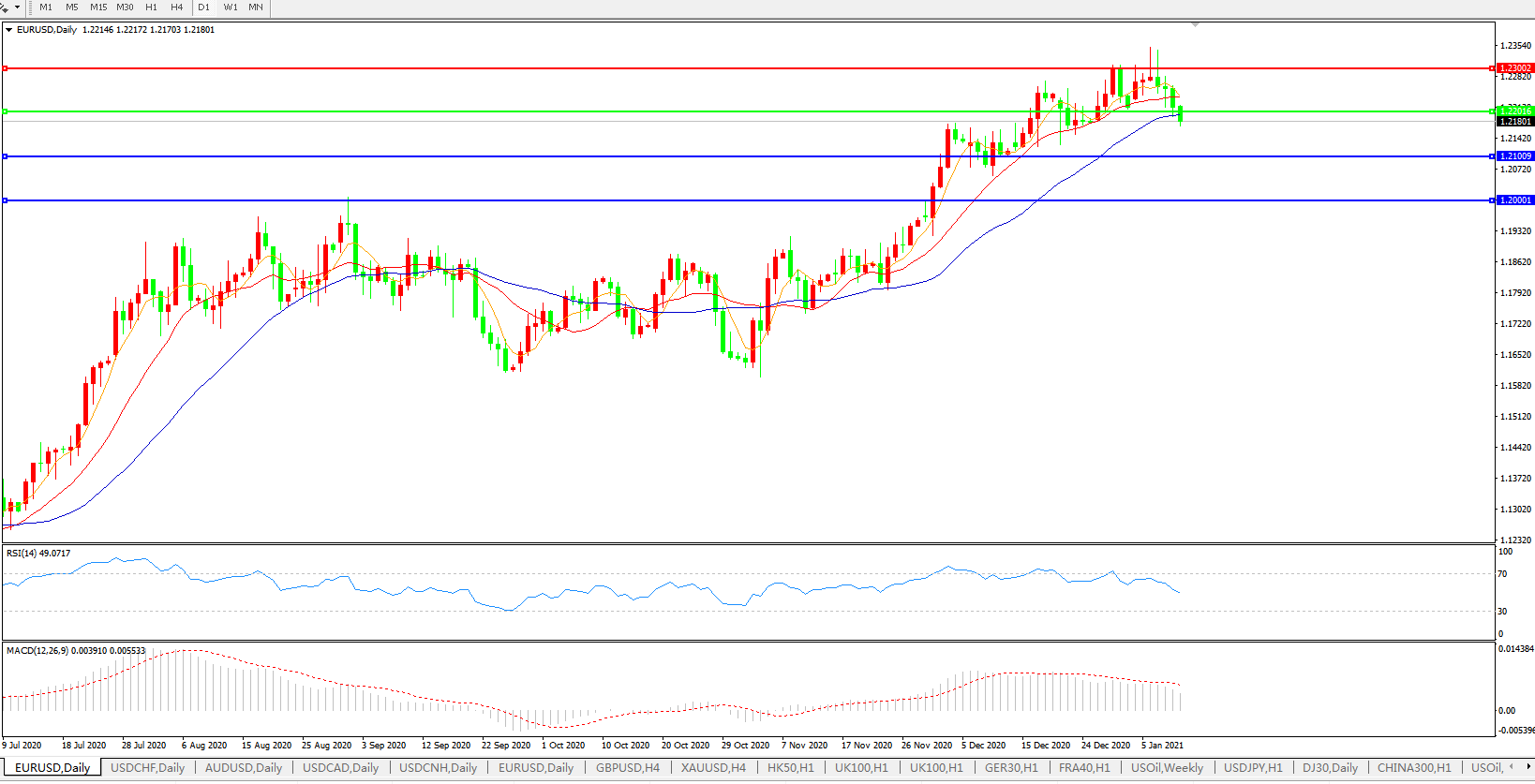 欧元兑美元EURUSD 日线图: