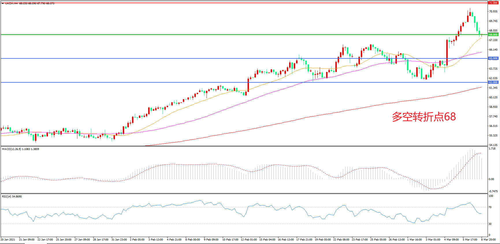 交易策略:在68.00之上看涨,目标72.00 75.00