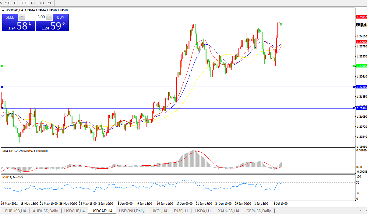 美元兑加元USDCAD    4小时图: