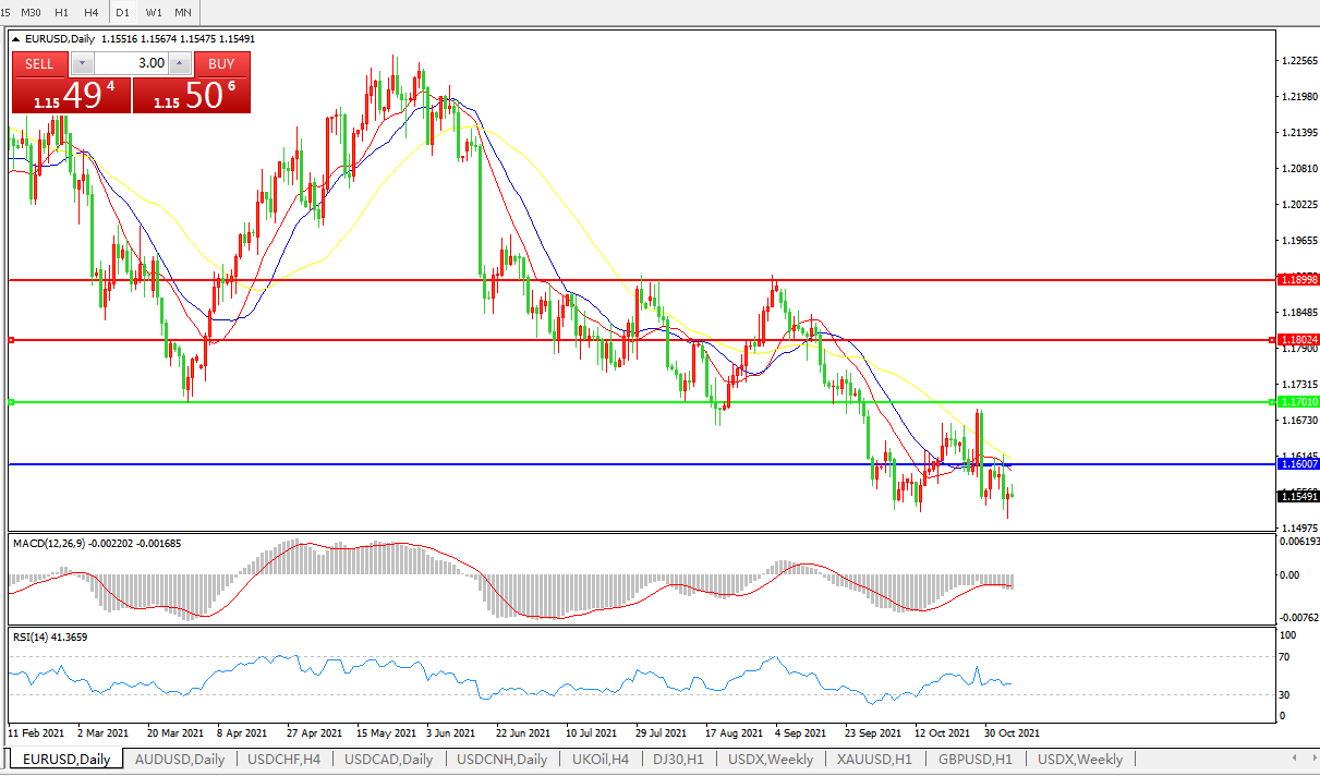 非农数据显示美国劳动力市场复苏势头加快,美指小幅上扬。道明证券经济学家认为这符合预期,美国经济数据和仓位可能有助于美元在未来几周保持坚挺。该行经济学家表示偏向看涨美元,这与11月份观察到的季节性趋势一致。欧元兑美元有跌至1.15下方的风险。