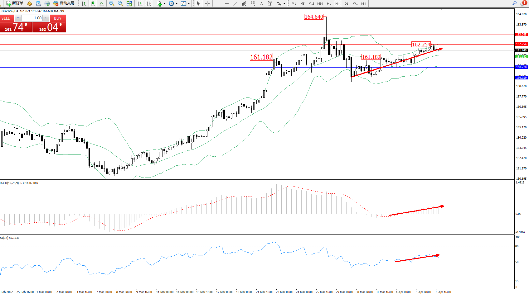 交易策略:161.182上方看涨,目标162.254、163.055
