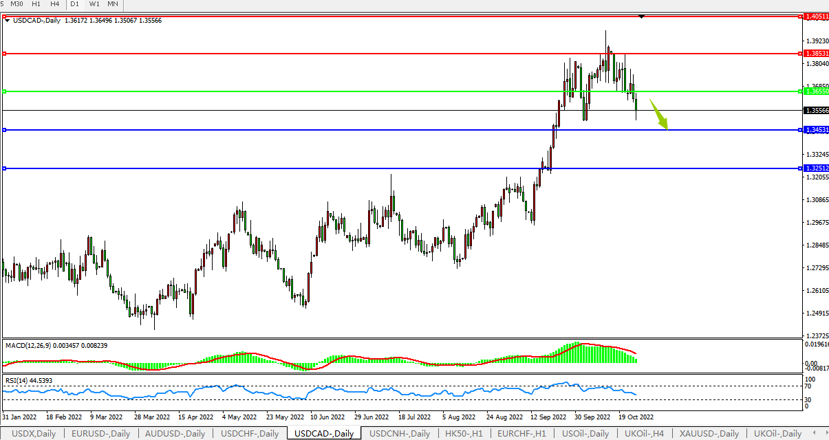 美元兑加元USDCAD 日线图: