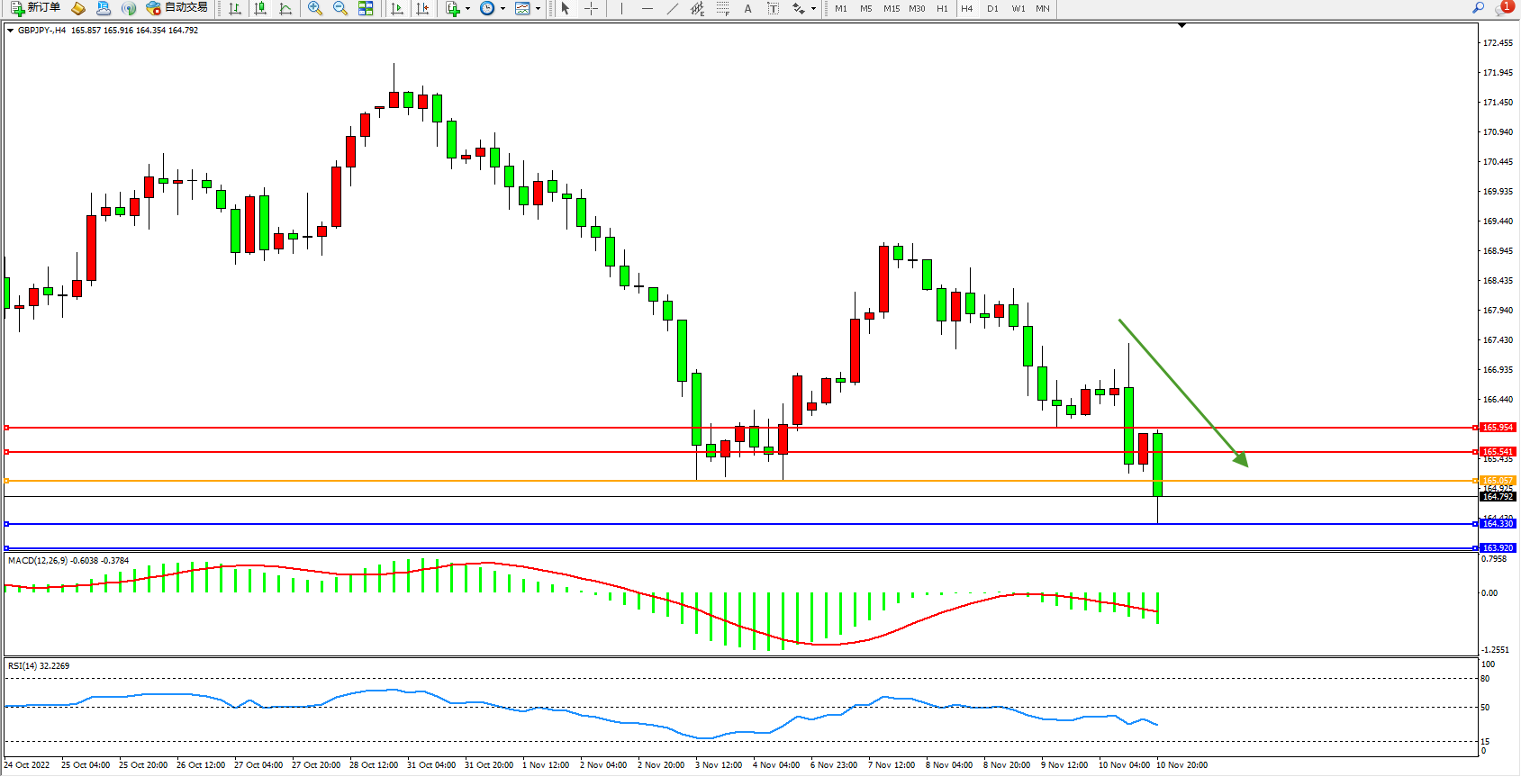 交易策略:165.057下方看跌,目标164.330、163.920
