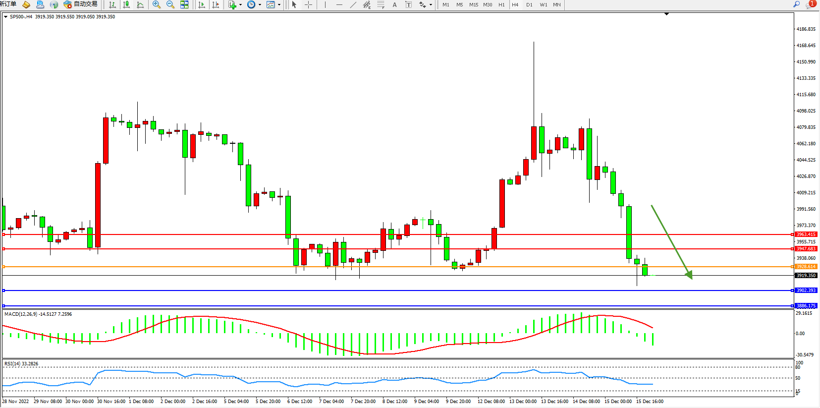 标普SP500——4小时K线图显示: