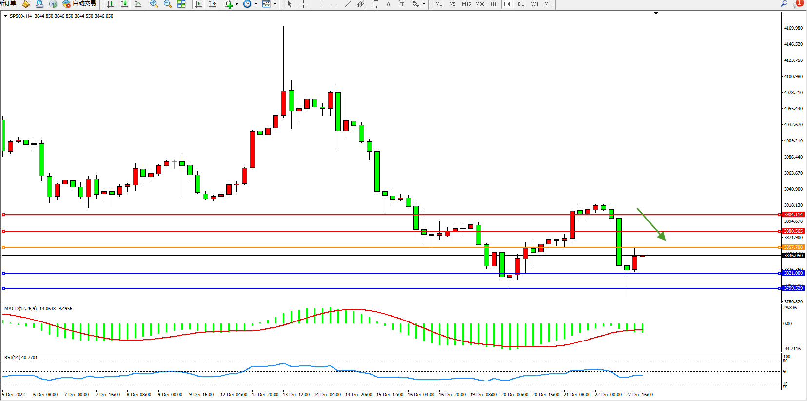 标普SP500——4小时K线图显示: