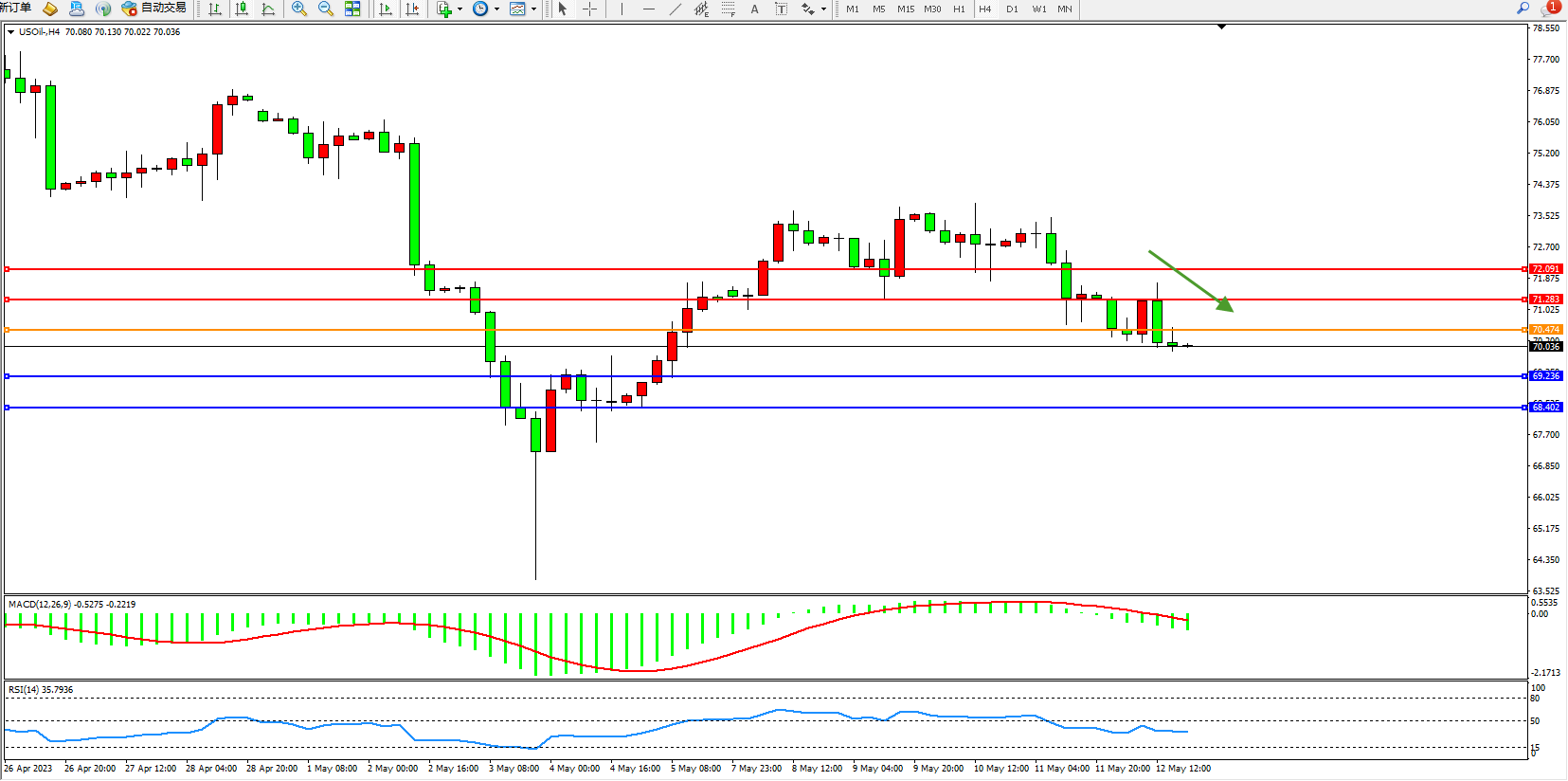 原油USOil——4小时K线图显示: