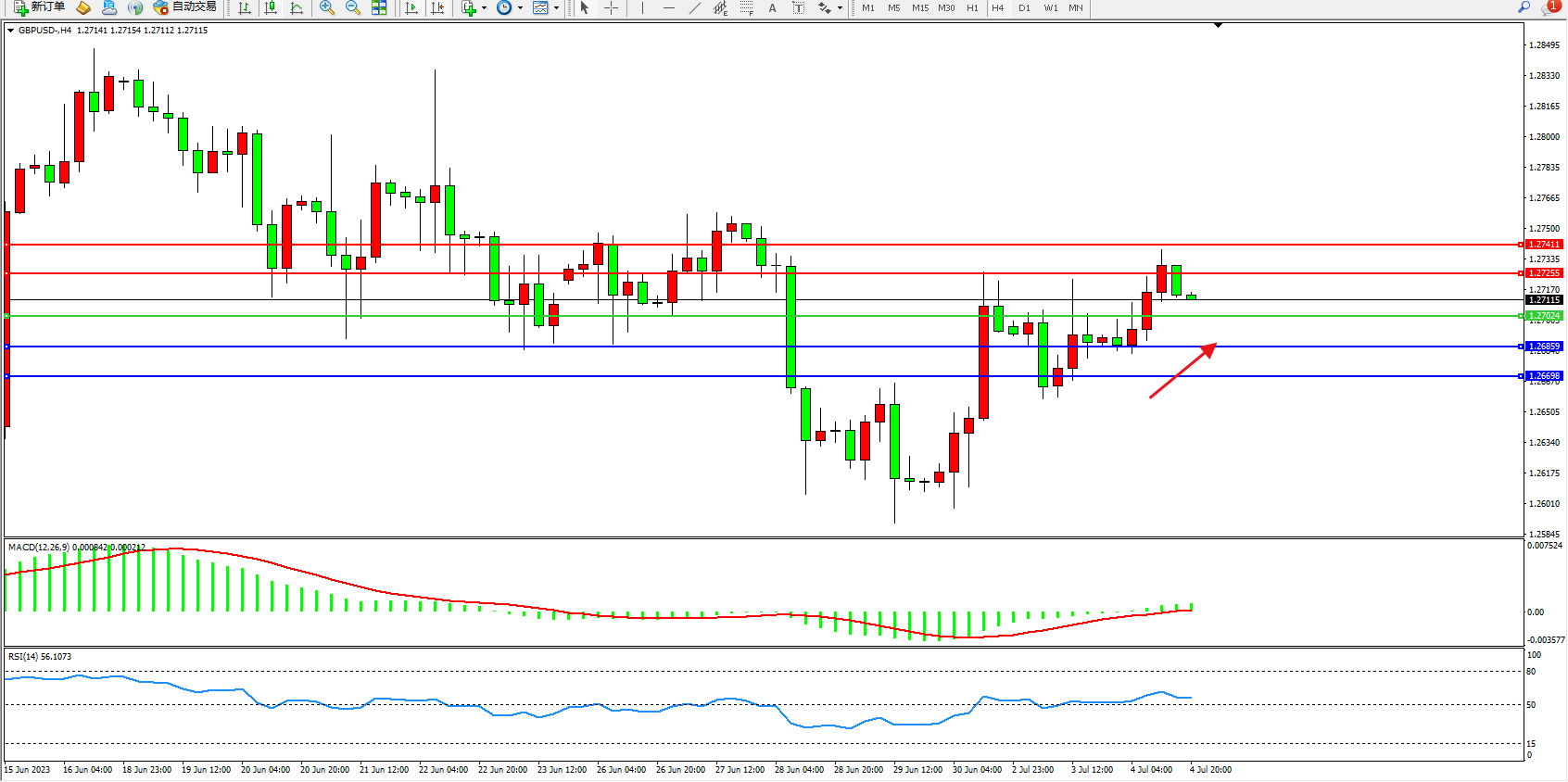 英镑美元GBPUSD ——4小时K线图显示: