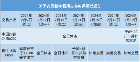 关于农历新年假期交易时间调整通知