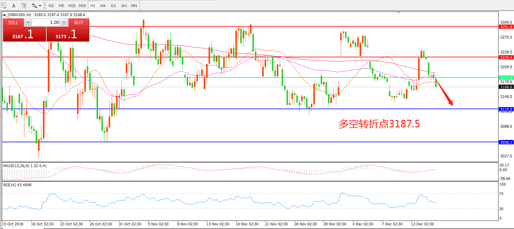 多空转折点:3187.50
