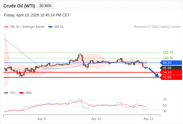 在 98.30 之下,看跌,目标价位为 94.10 ,然后为 91.85 。