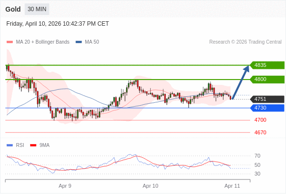 在 4730 之上,看涨,目标价位为 4800 ,然后为 4835 。
